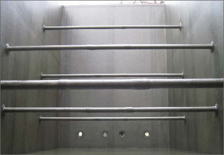 容器・塔槽類の内面に耐蝕材(FRP)を内面に施工し耐蝕性、耐薬品性を持たせます。紫外線に曝露させる屋外の仕様に耐えうる耐候性、錆びない耐蝕性、耐薬品性にすぐれている為、水槽や浄化槽、塩酸や硫酸等の劇薬の貯槽にも利用されます。